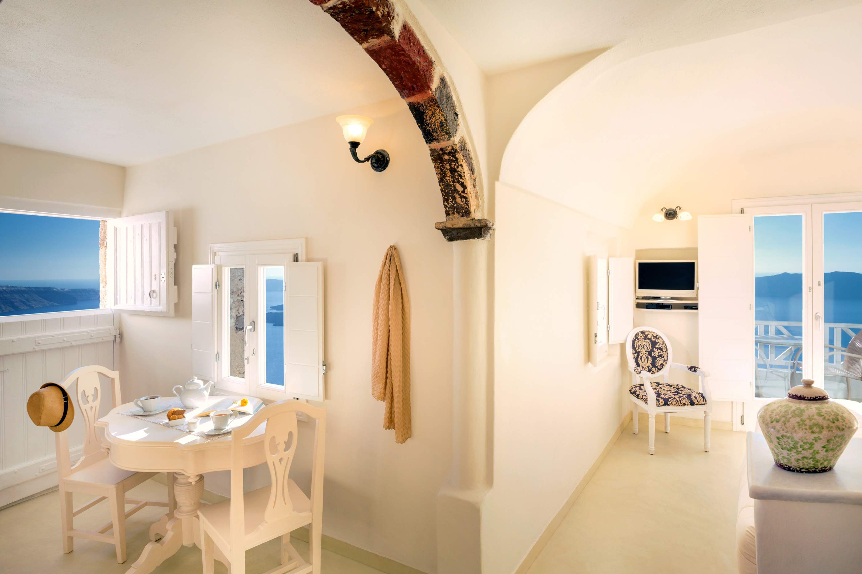 Our private studio is a small apartment for two, with a romantic private balcony facing right towards the sunset! It has a built double queen size bed, a small kitchen, a living room and a bathroom. It is ideal of Honeymooners!